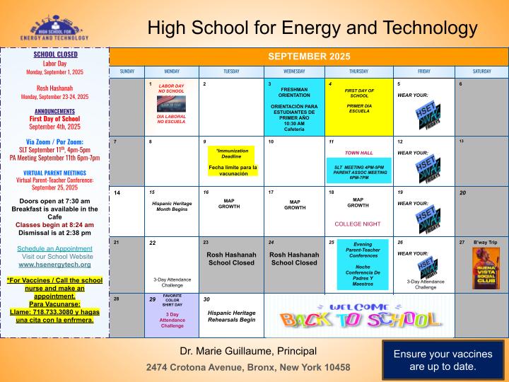 October Holidays (School Closed): 10/2, 10/12, 10/20